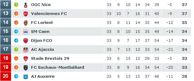 Rimanendo in tema di scontri diretti non possiamo non parlare di Valenciennes-Nizza. Le due squadre guidano il gruppone ed una vittoria potrebbe significare, se non la salvezza, un buon margine da gestire sul terz’ultimo posto. I rossoneri vengono da 3 vittorie nelle ultime quattro e appaiono più in forma, mentre i padroni di casa vengono da un rendimento opposto: 3 sconfitte nelle ultime quattro. La sconfitta casalinga con l’Evian di due giornate fa ha scombinato i piani al tecnico Sanchez, che però deve approfittare delle pesanti assenze di Mounier, Digard, Pejcinovic e Abraham del Nizza e raggiungere la fatidica quota 40.