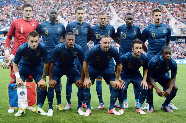 L’11 di partenza scelto da Didì è caratterizzato dalla riconferma di Benzema, Ribery, Lloris, Valbuena, Evra e Debuchy, con l’aggiunta dell’esordiente Yanga–Mbiwa a comporre il tandem centrale con Sakho e la presenza a centrocampo del duo Gonalons–Mavuba rispolverato per l’occasione. Il modulo dei primi 45 minuti è praticamente un 4-4-2 con Valbuena e Ribery più avanzati a supporto delle due punte Giroud e Benzema, per la prima volta insieme dall’inizio.
