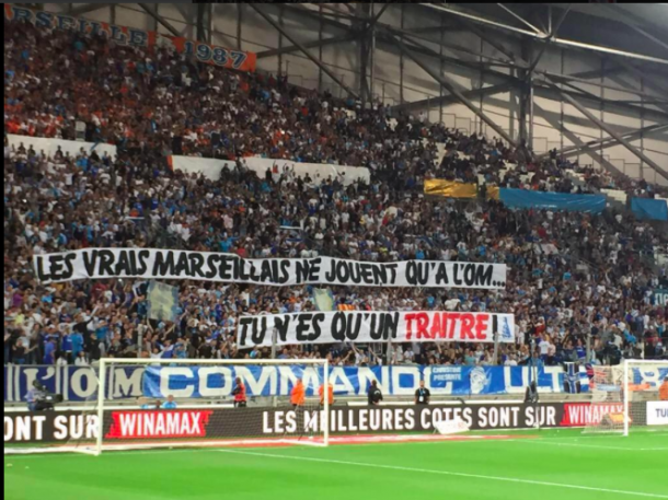 La gara è stata sospesa per 15 minuti a causa del lancio di oggetti in campo. L’accoglienza per il ritorno del ‘traditore’ Valbuena è stata infernale, con tanto di fantoccio del giocatore impiccato in curva.