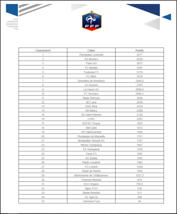 Un primato che non poteva che essere raggiunto dal Lione, società che è stata classificata al primo posto per quanto riguarda la formazione di giovani giocatori nel territorio.